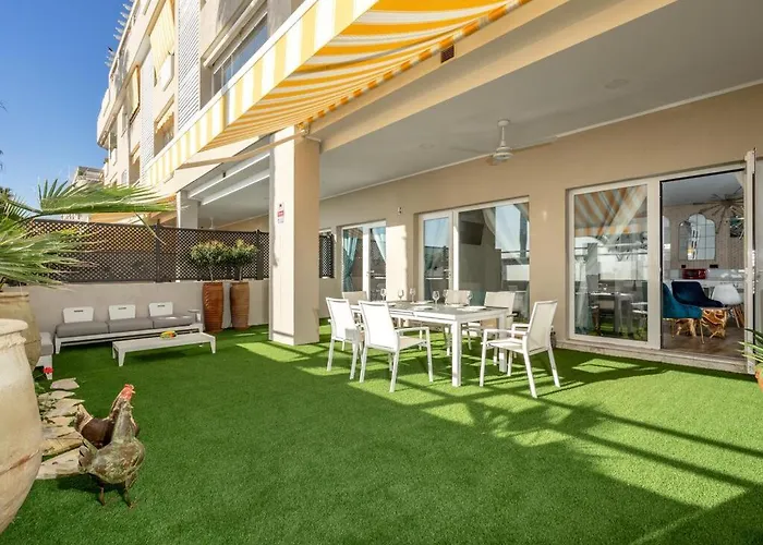 Apartamentos LOLA y MANUELA en primera línea playa Carihuela con excelente Terraza-jardin de 80 m2 frente al Mar con aparcamiento privado Ideal para descansar oyendo las olas del Mar